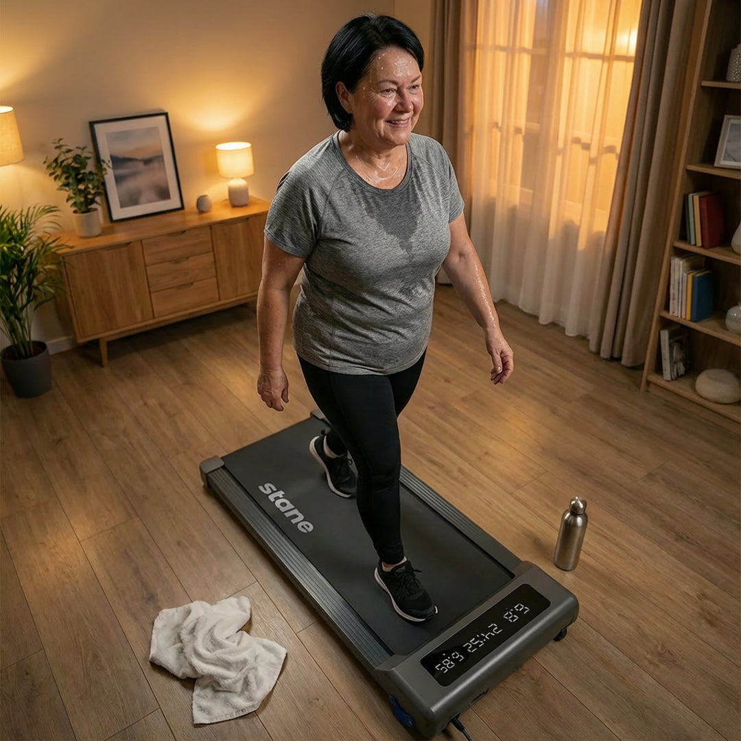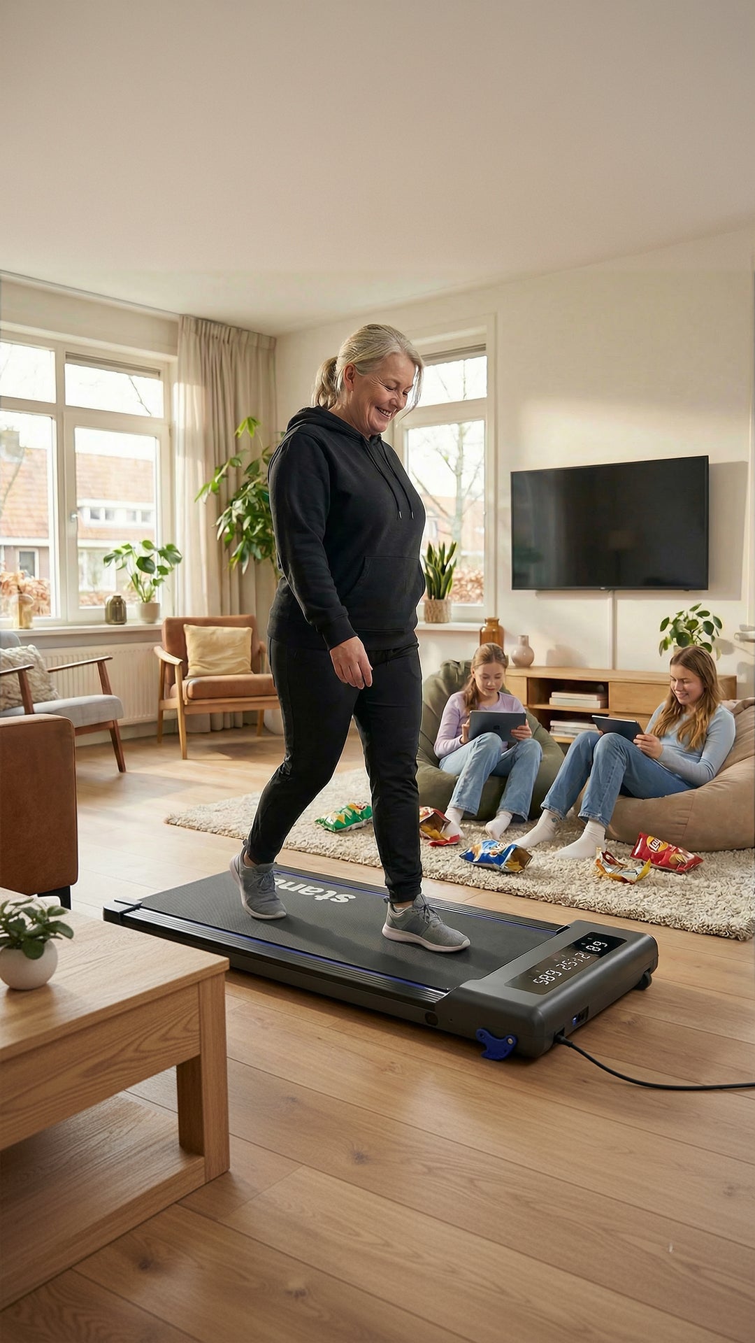 Geen regen, geen koude, geen lege agenda nodig. De loopband staat er altijd. Zet hem neer, loop rustig terwijl je tv kijkt of een podcast luistert, en je dagelijkse beweging is geregeld. Zo bouw je een routine die je écht volhoudt.